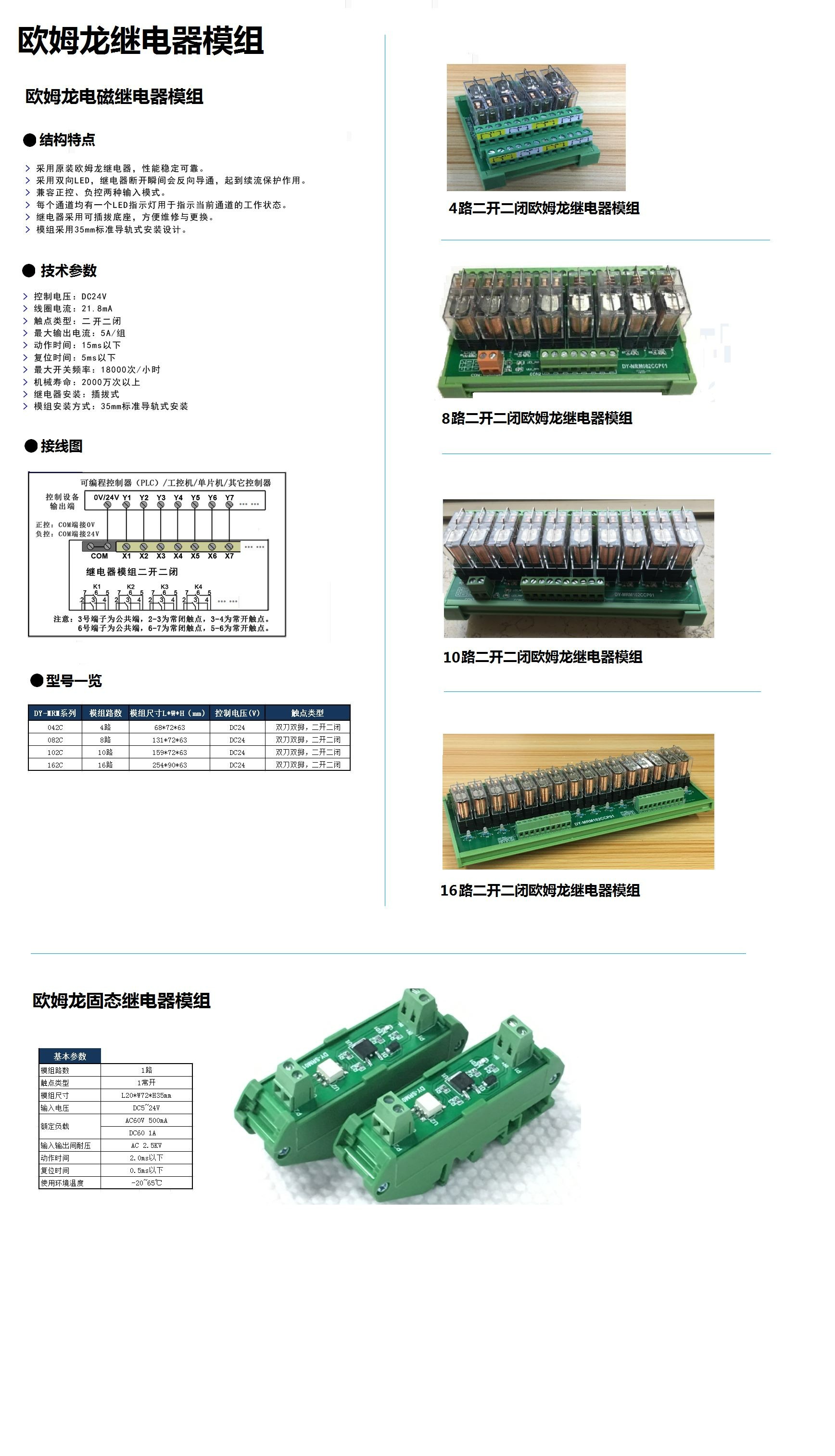 采用原裝歐姆龍繼電器,性能穩(wěn)定可靠。 采用雙向LED,繼電器斷開瞬間會反向?qū)?,起到續(xù)流保護(hù)作用。 兼容正控、負(fù)控兩種輸入模式。 每個通道均有一個LED指示燈用于指示當(dāng)前通道的工作狀態(tài)。 繼電器采用可插拔底座,方便維修與更換。 模組采用35mm標(biāo)準(zhǔn)導(dǎo)軌式安裝設(shè)計。
