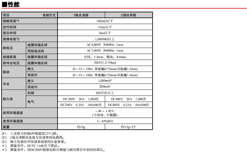 通過產(chǎn)品的2接點串聯(lián)實現(xiàn)了DC400V 20A雙向開閉 寬度15.2mm的纖細尺寸實現(xiàn)了無論極性的DC200V 20A開閉 功耗530mW的高靈敏度 (保持電壓50%的使用環(huán)境下實現(xiàn)更好的節(jié)能效果) 線圈和接點間的絕緣距離5.5mm以上,耐沖擊電壓10kV的高絕緣性 串聯(lián)連接取得了UL/TüV/CQC認證