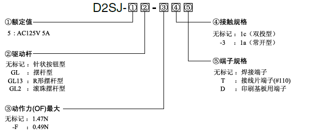 D2SJ-5 超小型基本開關 高安全而又可靠的超小型基本開關 外形尺寸與SS系列相同。 適應未來市場需求。 備有5A型產(chǎn)品。